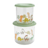 The Baby Dinosaur Good Lunch® Snack Containers feature adorable dinosaurs in a soft color palette. Good Lunch® Snack Containers are clear, durable, leak-proof, and eliminate the need for plastic bags and keeps food fresh and organized.