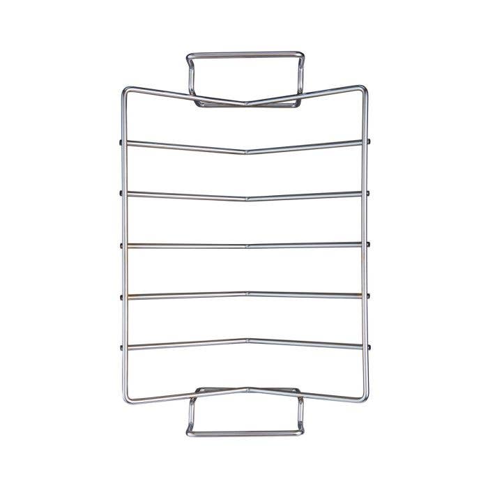 HIC Roasting's Pro V Wire Roasting Rack is an invaluable addition to cooking utensils and chef tools for cooking, baking, broiling, and roasting. It elevates food above fat and juices and allows even heat circulation for all-over browning. Its V-shape cradles food securely, while the reinforced handles make transfer easy, and the reinforced footed base supports heavier food, and adds stability during use. It's ideal for cooking beef, chicken, turkey, pork, game, and more. Easily prepare everyday or holiday meals and foods for entertaining with friends and family. Made from heavyweight chrome-plated steel wire, HIC Roasting's Wire Pro V Wire Roasting Rack is sturdy, durable, heat and oven safe (to 500-degrees Fahrenheit), and won't scratch surfaces.