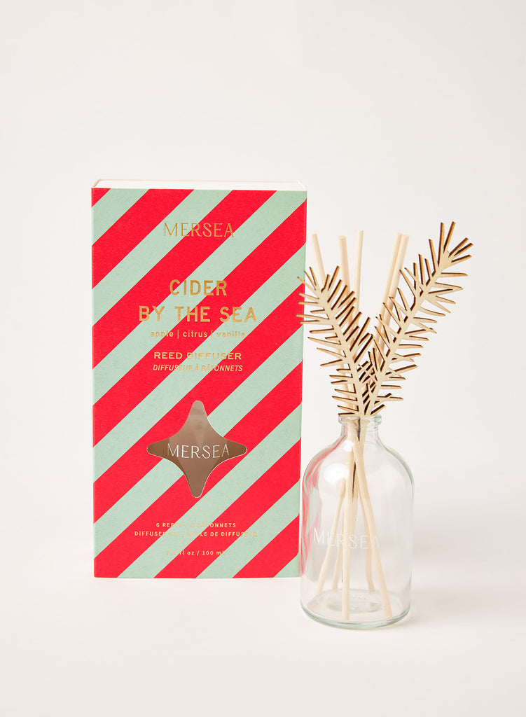 Experience the cozy charm of winter with our Holiday Reed Diffuser, Cider by the Sea. Blending sea salt and crisp cider with sweet apple, vibrant citrus, and warm vanilla, it captures the magic of misty coastal shores. Perfect for adding a festive, inviting atmosphere without a flame, this compact diffuser works beautifully in any room. Its natural wooden reeds effectively disperse the rich fragrance, while the engraved glass bottle—with a rubber stopper and aluminum seal—adds a thoughtful touch, making it an ideal gift. Includes six wooden reeds for lasting scent