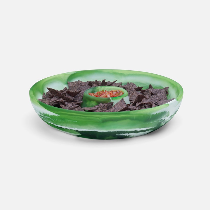 Bring joy to tabletops with Hugo---an elegant series of two-tone resin pieces in mesmerizing marbleized finishes and versatile sizes.