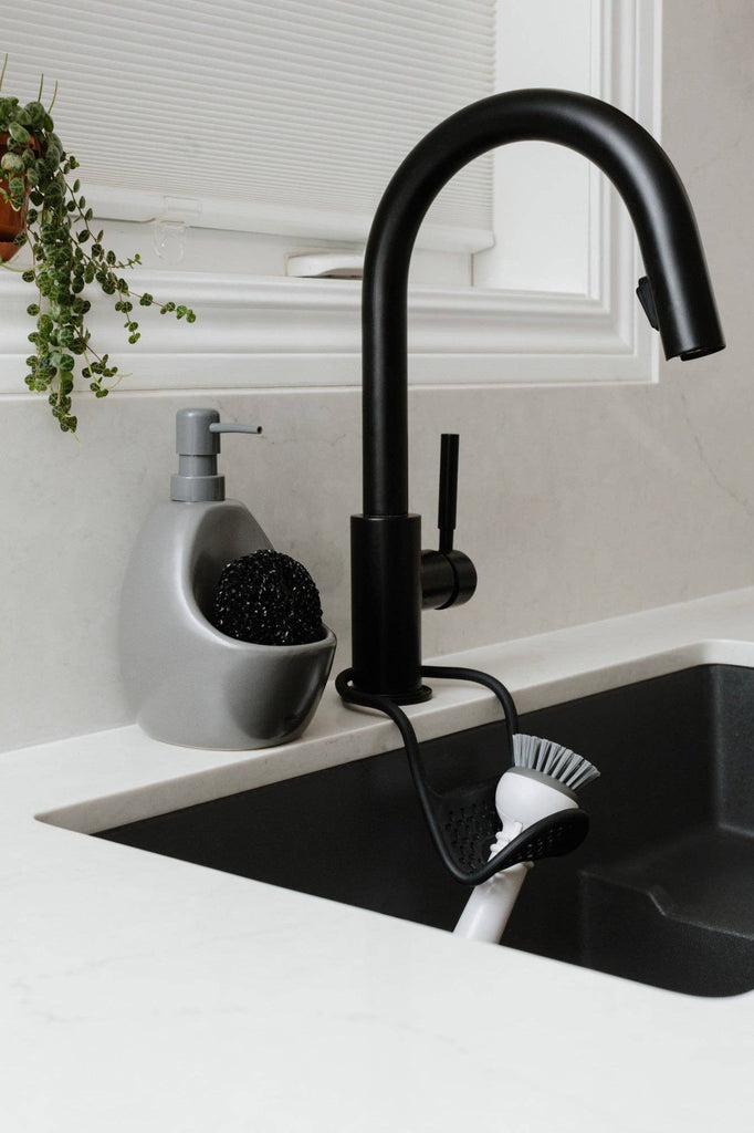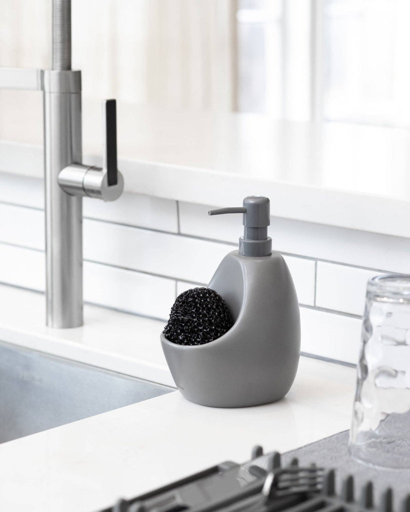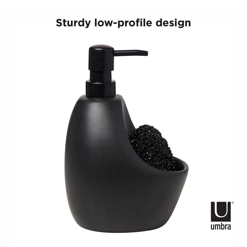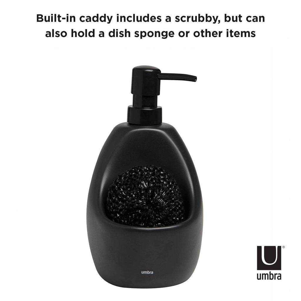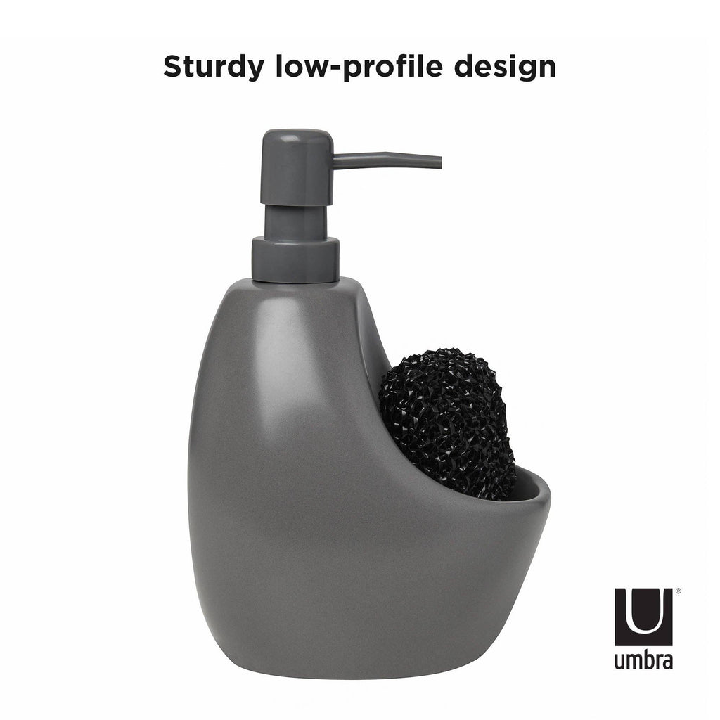 Umbra Joey Soap PumpThe sleek and modern-looking design of Joey Soap Pump will be a great addition to any countertop either in your kitchen or bathroom. Joey’s built-in caddy keeps your kitchen essentials like a scrubby (included) neatly organized, while at the same time offering easy single-handed pump operation due to its sturdy and heavy ceramic material. Joey is loved for its versatility as its built-in caddy offers neat storage space for your bathroom essentials such as hair elastics, bobby pins, hair clips or dental floss – it’s great for all the little essentials cluttering up your countertop that make it so much more annoying to clean.