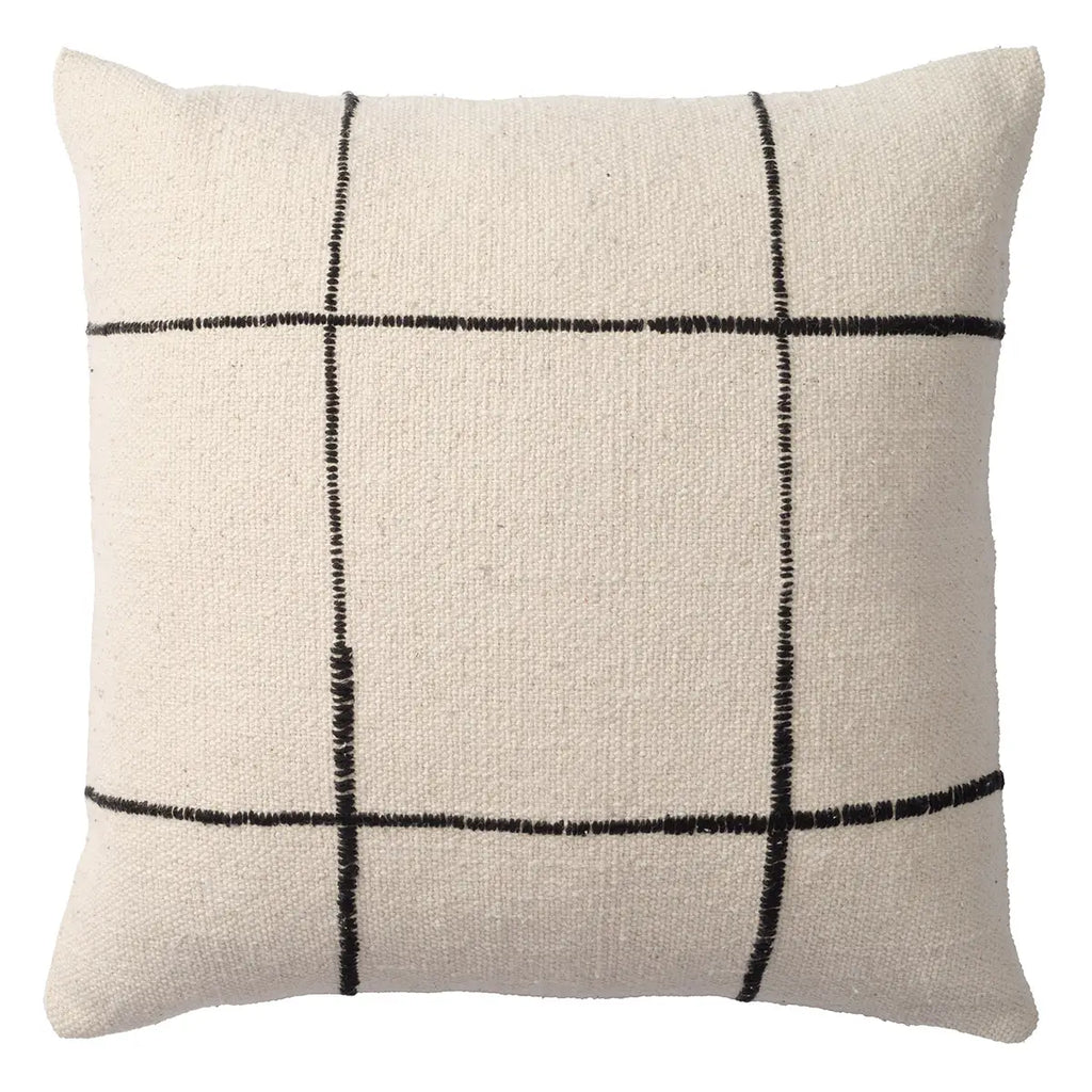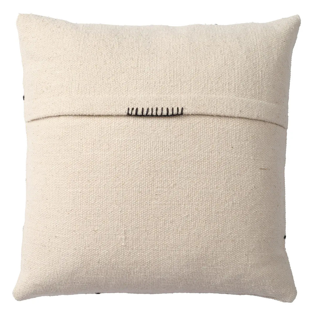 Neem & Jaipur Living present the Margosa collection, offering stonewashed and embroidered handcrafted throws, blankets, and bedding expertly crafted of soft cotton and hand-spun wool in India. Grounded in ancient textile traditions, this collection brings natural designs and textures through indigenous techniques, nature-inspired colors, and raw fibers. The Najma pillow is crafted from 100% cotton with a solid white design, accented by a bold black stripe for a striking focal point. Its square shape and subtle texture make it a versatile accent.