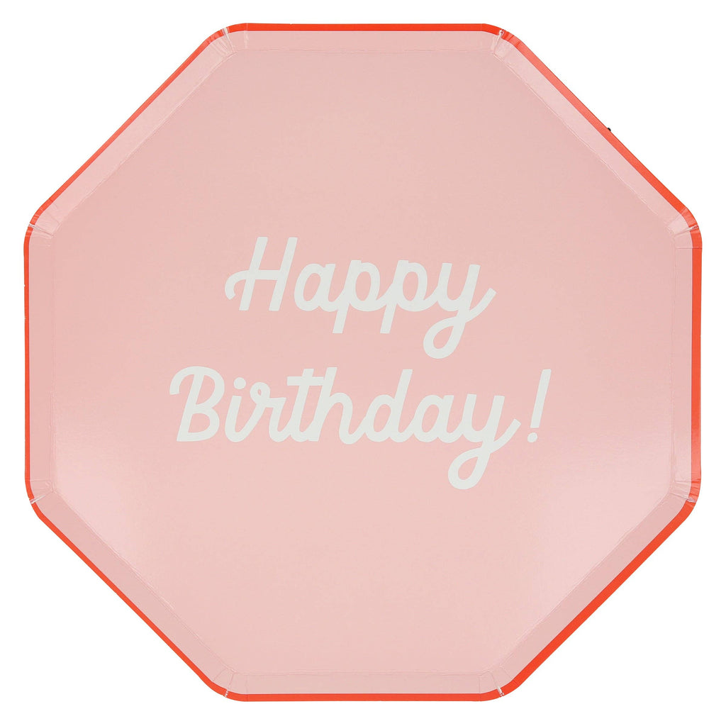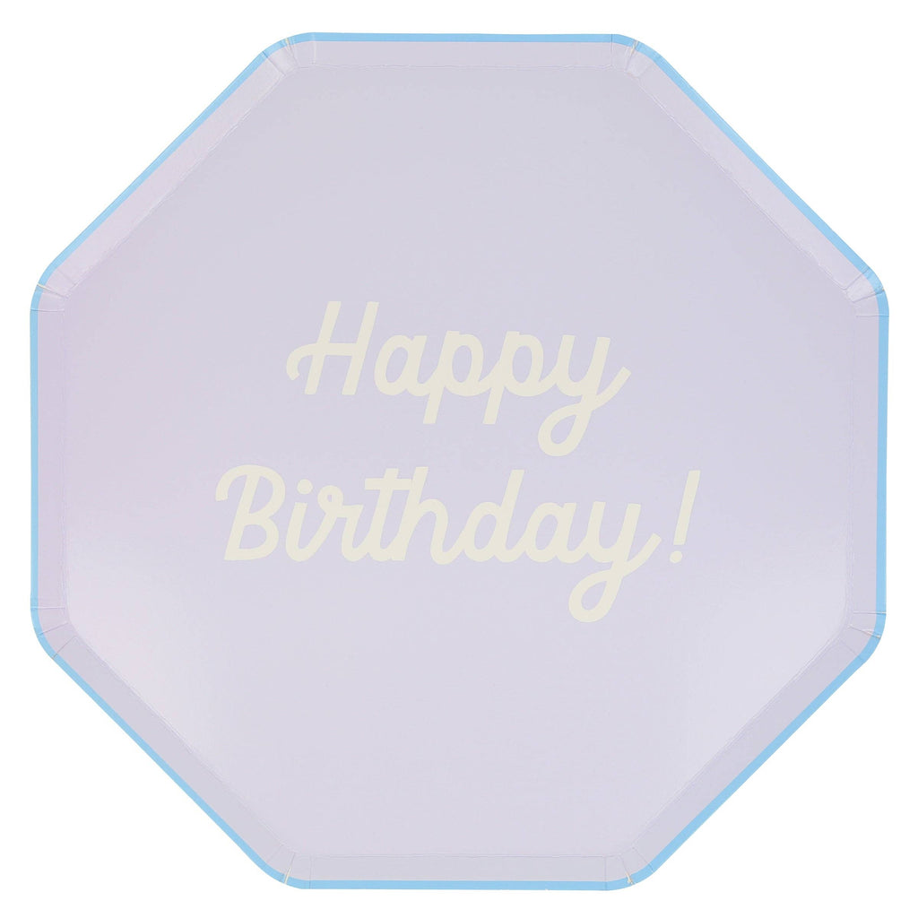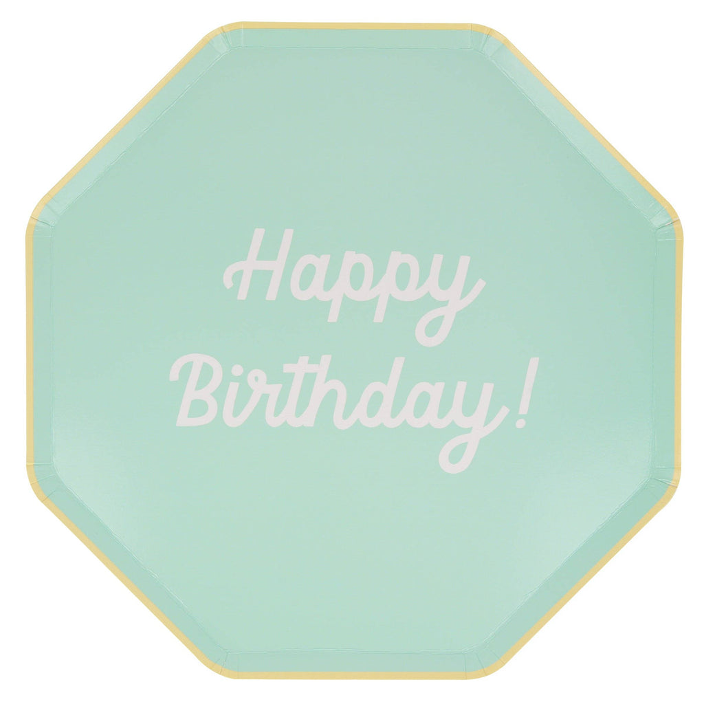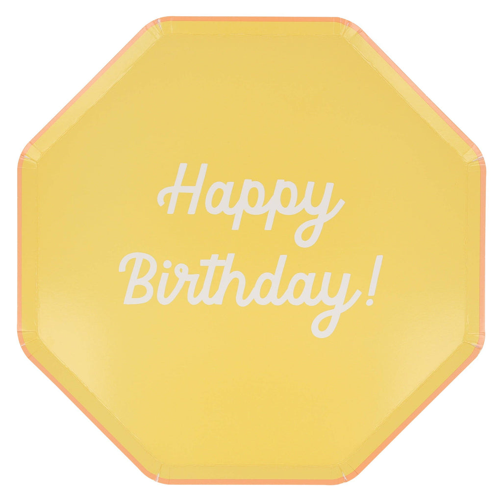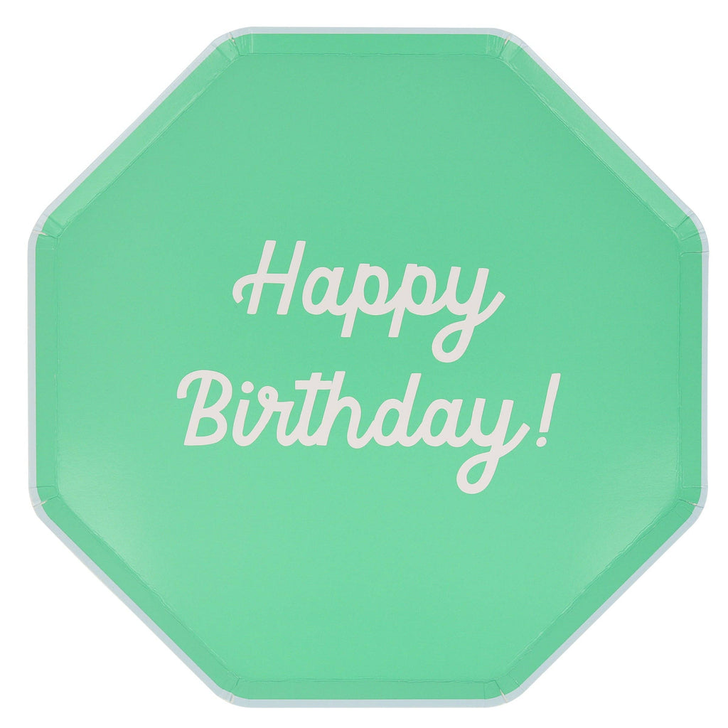 You can never say “Happy Birthday” too many times, so let these special paper dinner plates spell it out for you! This set contains a rainbow of colors to brighten up any birthday party, and beautifully complements the rest of your birthday party supplies. Each octagonal plate also has a coordinating colored border to add extra style to the celebrations.