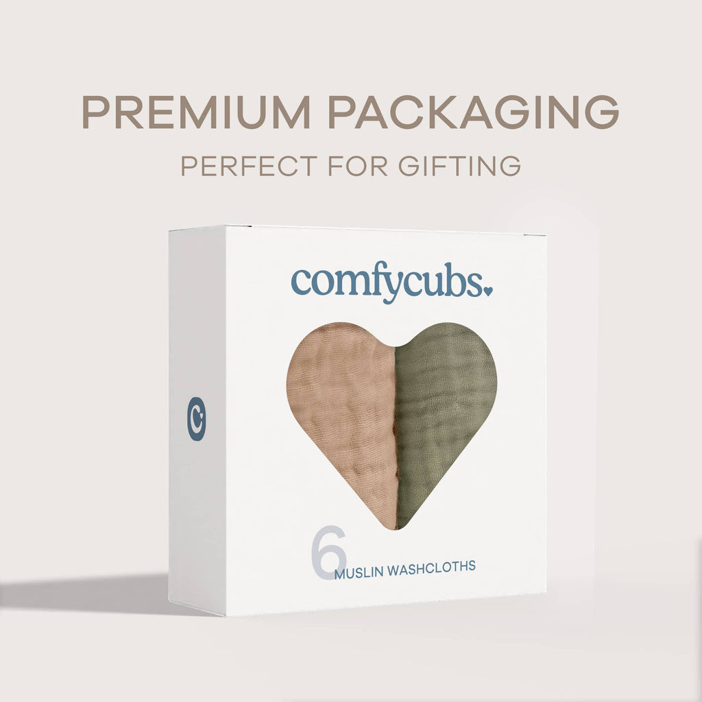 The 6-layer 10 x 10-inch muslin fabric ensures these washcloths are not only ultra-soft but also highly absorbent. Comfy Cubs cotton washcloths are free from harmful chemicals, giving parents peace of mind knowing their baby is safe. Parents love how these muslin wash cloths retain their quality wash after wash.
