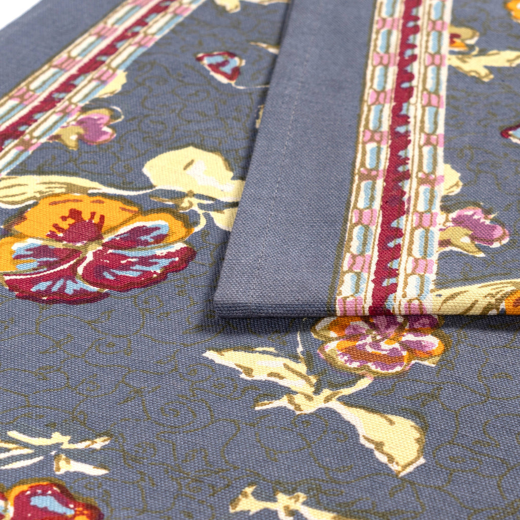Floral patterns intermix with abstract designs in the Pansy linen, providing a classic yet modern backdrop to any table setting. With a vibrant array of colors and intriguingly complex patterns, this French linen has been carefully handprinted by skilled artisans using a time-honored technique, resulting in a singular piece of craftsmanship.