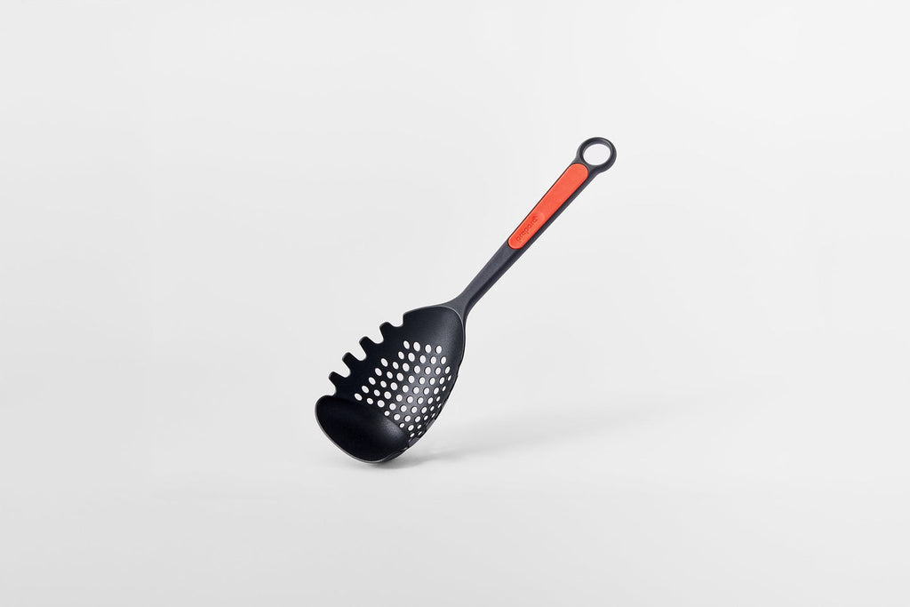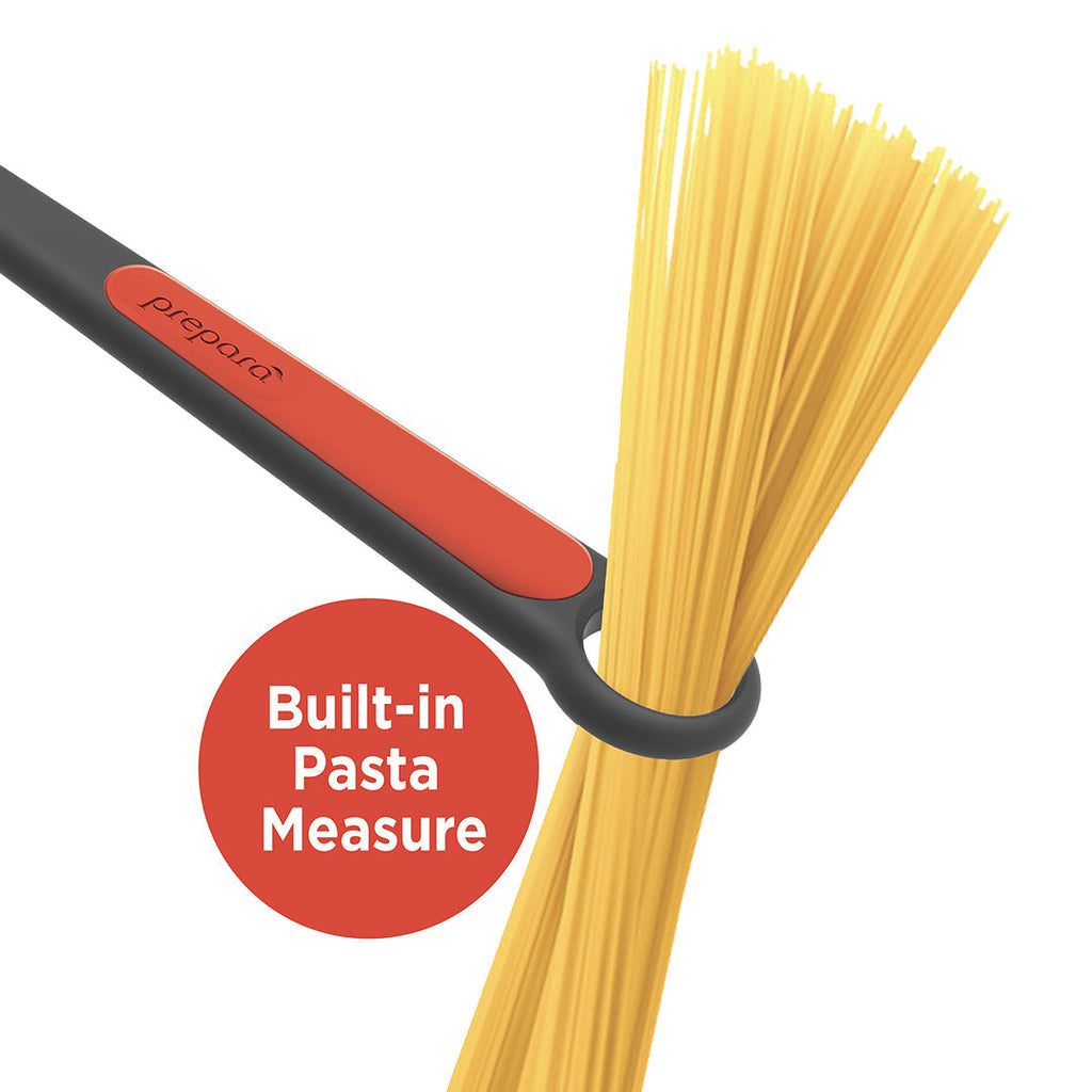 Prepara’s Pasta Max redefines pasta straining and serving with its innovative design. Featuring a non-perforated ladle head for precise sauce plating, an extra-large colander for straining, and a built-in pasta measure on the handle, it streamlines the entire process from pot to plate.