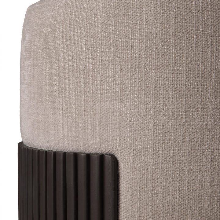 The Roller Max collection stands out with its distinctive stacked wood-stick design, bringing a striking visual element to any space. The Roller Max pouf is a versatile piece that merges function with style, featuring a plush upholstered cushion nestled within a dark brown-varnished mahogany frame. This unique combination of natural wood textures and comfortable seating makes it an ideal addition for both lounging and as an extra surface. Perfect for those seeking both elegance and utility in their furniture choices.
