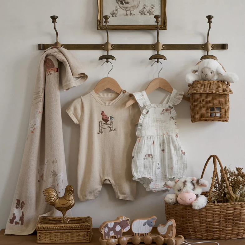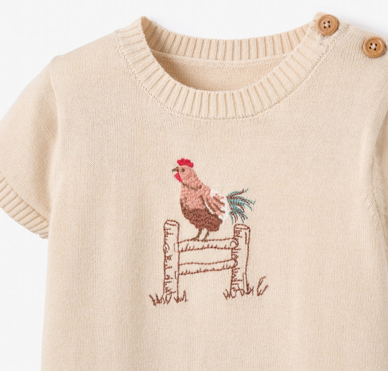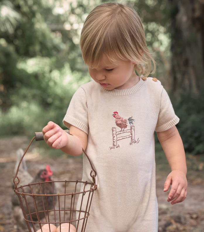 A soft knit shortall finished with classic rooster embroidery. Thoughtfully designed to balance comfort and character, it's perfect for everyday wear with a timeless feel.
