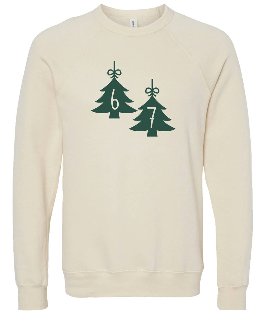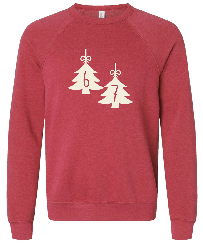 6-7... If you know, you know. Am I right? Laugh with your kids this Christmas season in our trending 6-7 sweatshirt! It's a Bella brand raglan sweatshirt that's oh-so soft, and available in 4 gorgeous color combinations! Our sweatshirts are a unisex fit and are screen-printed by hand in the USA by a member of our all-female team, using an eco-friendly, water-based ink. They're machine washable and dryable. They're made from a super-soft blend of 52% cotton and 48% polyester.