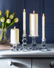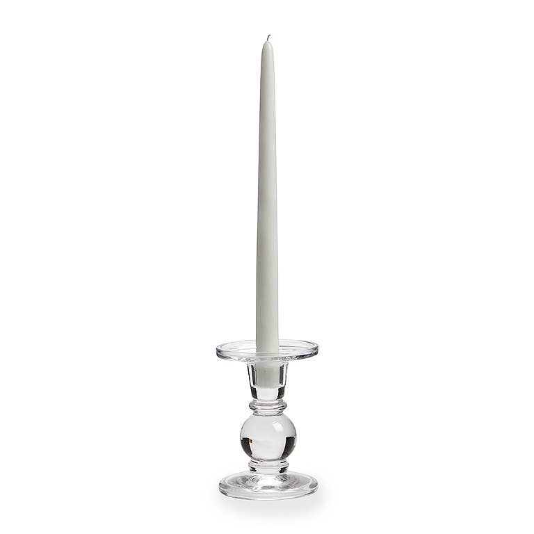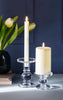 Put our stately glass candleholder to the test! Dual-purpose footed design stands on either end to display pillar or taper candles.