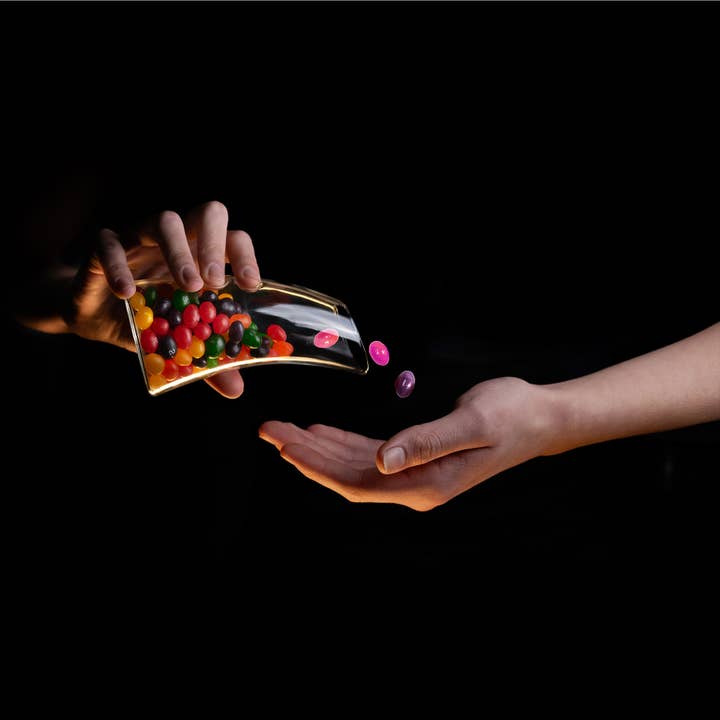The best-selling Snak Carafe is now improved with a new silicone lid. The perfect way to keep your favorite snacks dust-free and ready to serve! Snak Carafe lets you enjoy snacks hygienically by pouring your favorite nuts or candies directly into your hand, instead of sharing from a communal bowl. No more fingers in the party snacks! Share snacks, not germs! The artisan-made mouth-blown carafe features a clean, individually crafted, contemporary design with ergonomic finger notches for easy pouring. Each one is handmade and unique. Note: lid does not provide an air-tight seal.