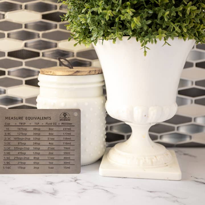 -MEASUREMENTS AND CARE: Dishwasher and hand wash safe for cleaning. Refrigerator magnet measures 4.3” x 3.4” x 0.2”. Provides conversions for cups, tablespoons, teaspoons, fluid ounces, and milliliters