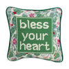 Make a statement with this charming-meets-chic needlepoint pillow. Hand embroidered in wool and backed in luxe green velvet, we've revived this Southern staple with sayings that are sure to get a smile.
