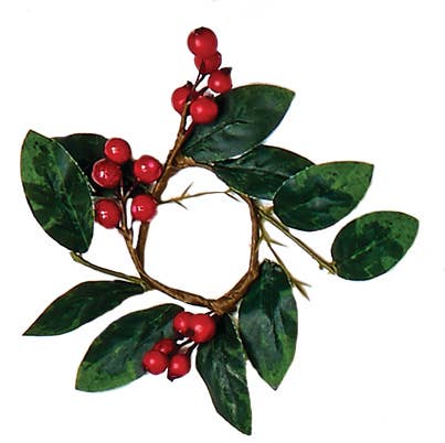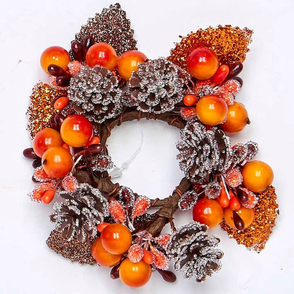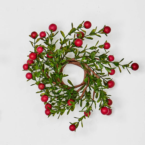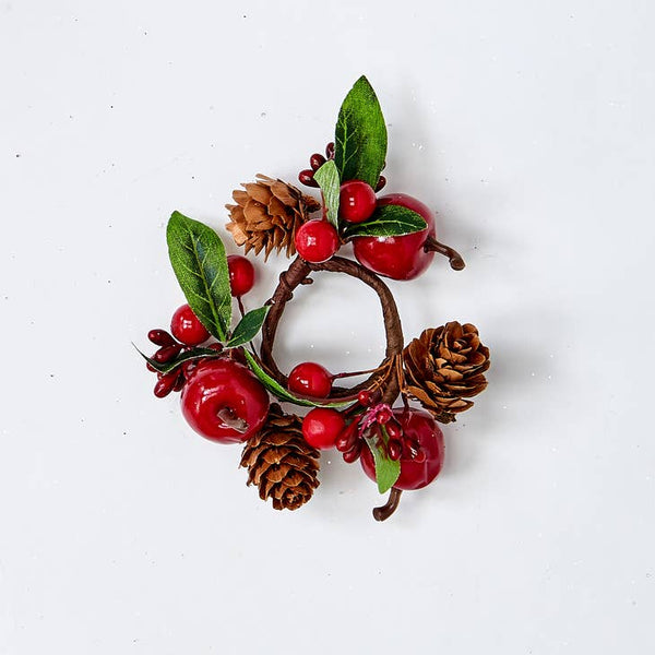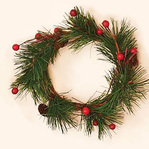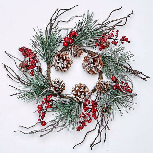 Frosted Pine Candle Ring W/Twigs & Berry 4.25"