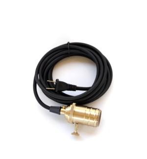 Black Fabric Cord with Brass Socket - 10ft black cord.