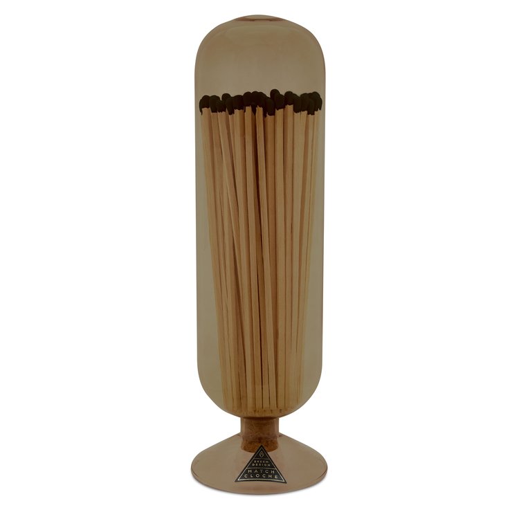 Alluding to olive groves, amber sun, and sweet, mulberry wine, our newest Fireplace Match Cloches are rich with deep shades of jewel-toned glass. Our Fireplace Match Cloches are inspired by vintage glass domes used to protect emerging seedlings, made with handblown glass and fitted with a cork to stylishly hold an assortment of extra-long matchsticks. A striker strip on the glass adds functionality, and the delicate vessels can be reused to display treasures and curiosities.