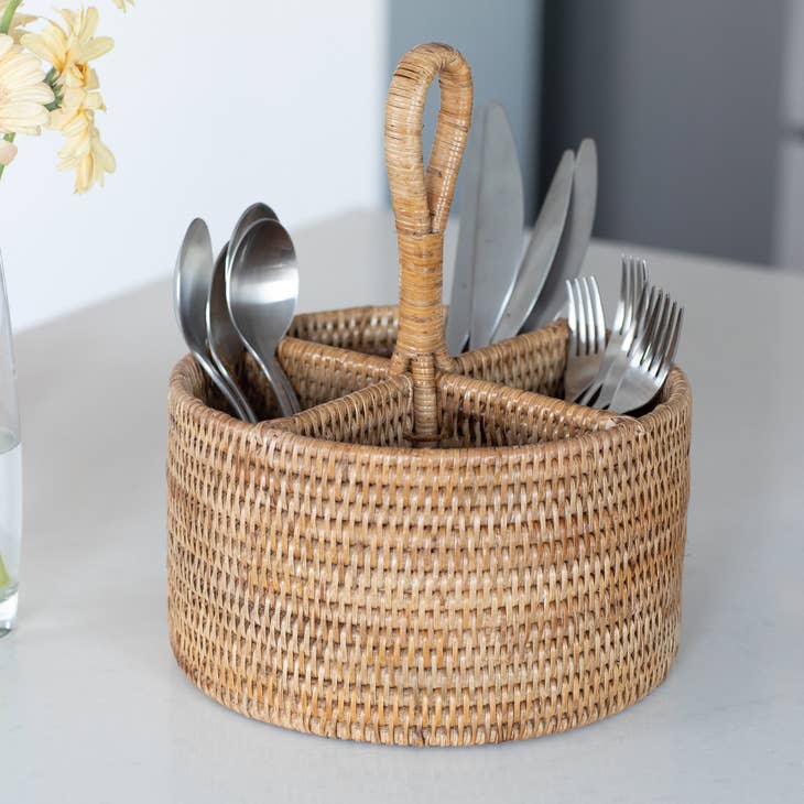 -The tight weave of our rattan cutlery holder/caddy will allow you to take it anywhere and store not only your silverware but anything else such as art supplies, sewing kits, or to help reduce the clutter on your desk.