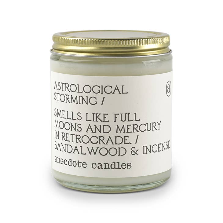 Sandalwood & Incense - If it ever feels like things are going haywire, burn this candle for instant satisfaction. Astrological Storming opens with light hints of apple and pear, followed by exotic violet notes and rich base notes of sandalwood and incense.