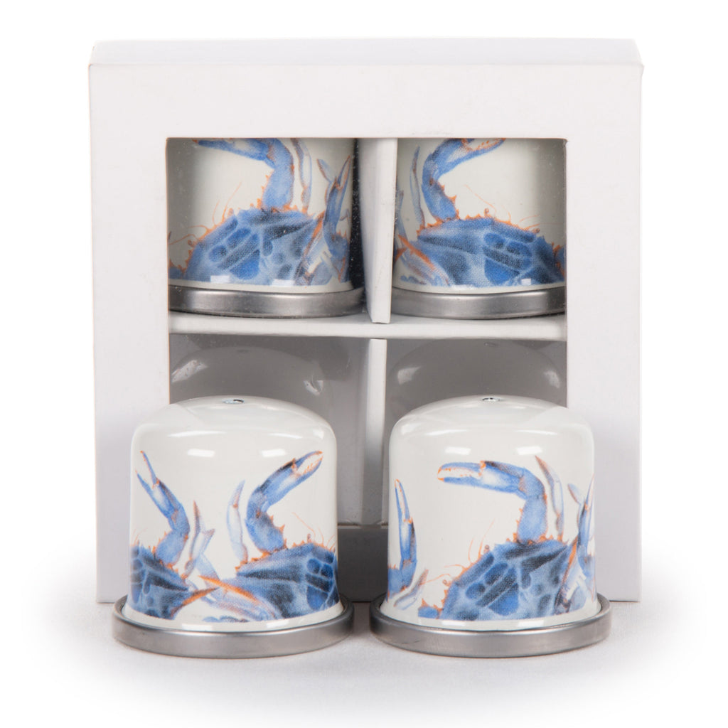 Add a splash of seaside charm to your table with the Blue Crab Salt & Pepper Shakers. Made from durable enamelware, these playful shakers feature a charming blue crab design, perfect for seasoning your meals with a touch of coastal style