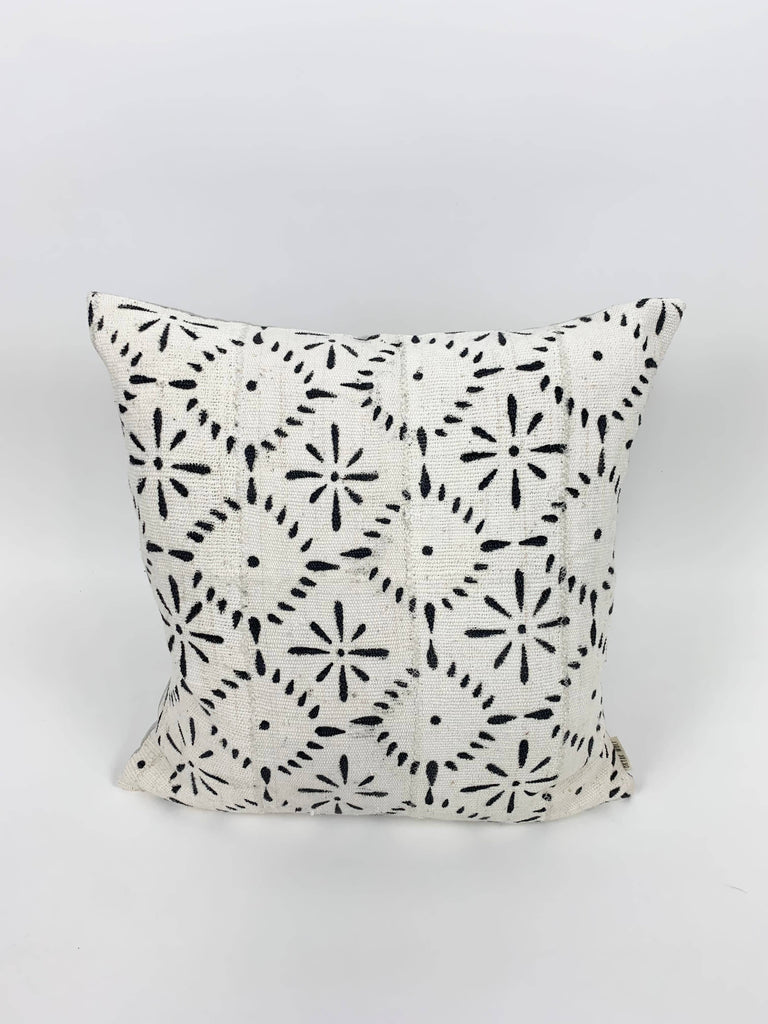 When you're seeking handmade luxury custom designer pillows to add rich texture, cozy warmth, and relaxed elegance to your living room or bedroom, look no further than our original African Mud Cloth Designer Handmade Collection. Our African Mud cloth line comes from Mali, Africa. The authentic texture and simple geometric patterns make for a great accent piece for your bed or couch. Each piece is hand-sewn and hand-dyed. The back of the pillow is made of linen.