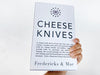 A cheese knife set for those who love color, and cheese. Includes a soft, semi-soft and hard cheese knife for cheese boards and buffets. Use the pointed knife for parmesan and other hard cheeses, the curved spreader for Brie and other soft cheeses, and the broad blade for everything in between. This set of cheese knives brings together high-quality steel blades and festive, speckled handles made from the same material as our cutting boards. They come in a gift box with a clear window for easy cheese knife viewing.