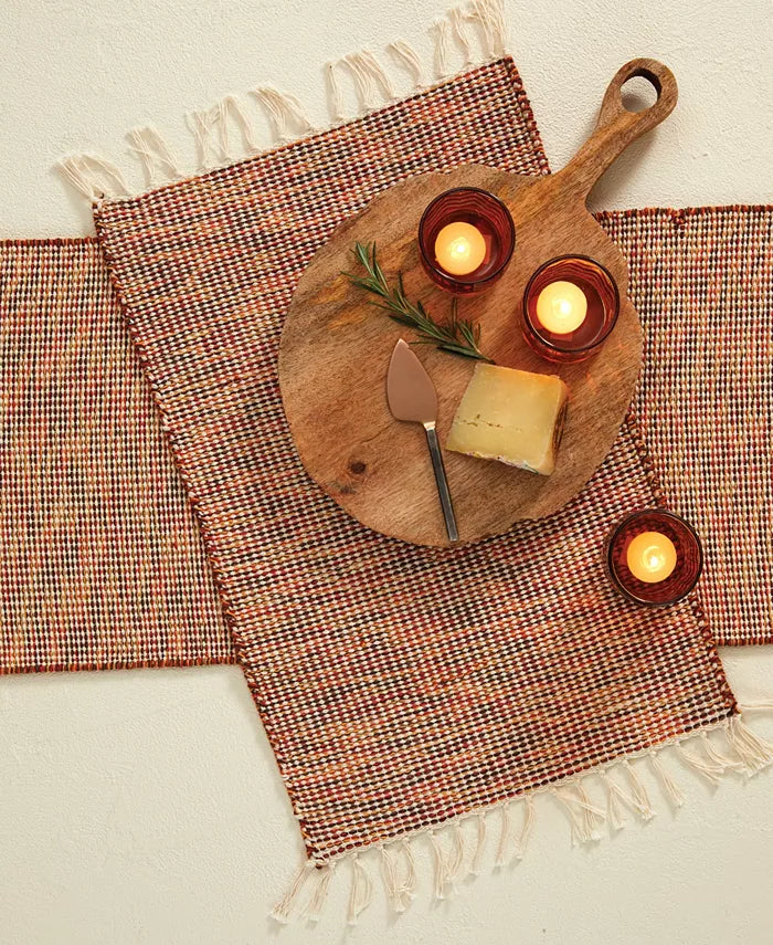 The Confetti Canyon Placemat is a classy addition to our Southwest and Autumn Harvest Collections, made from 100% cotton with soft, white tassels at either end. It features Tableau exclusive artwork—a vibrant speckling of color in which can be seen an ornate, tribal pattern! It will accent your home's decor with Southern glamor!