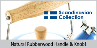 The blond wood handle and knob are made of 100% natural Rubberwood, a tropical tree that grows in the warm climate of Asia.