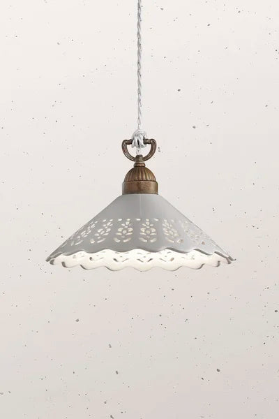 The Fiori di Pizzo collection features lamps with precious ceramics from Bassano. These lamps are a modern take on classical designs and come with expertly perforated embroidery that adds great aesthetic value. The refined workmanship allows for the creation of light effects on walls by projecting flowers and other decorative patterns during lighting.