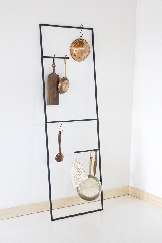 A versatile display ladder for plants, bathroom linens, or kitchen pots and accessories. Hand-welded steel frame in matte black.