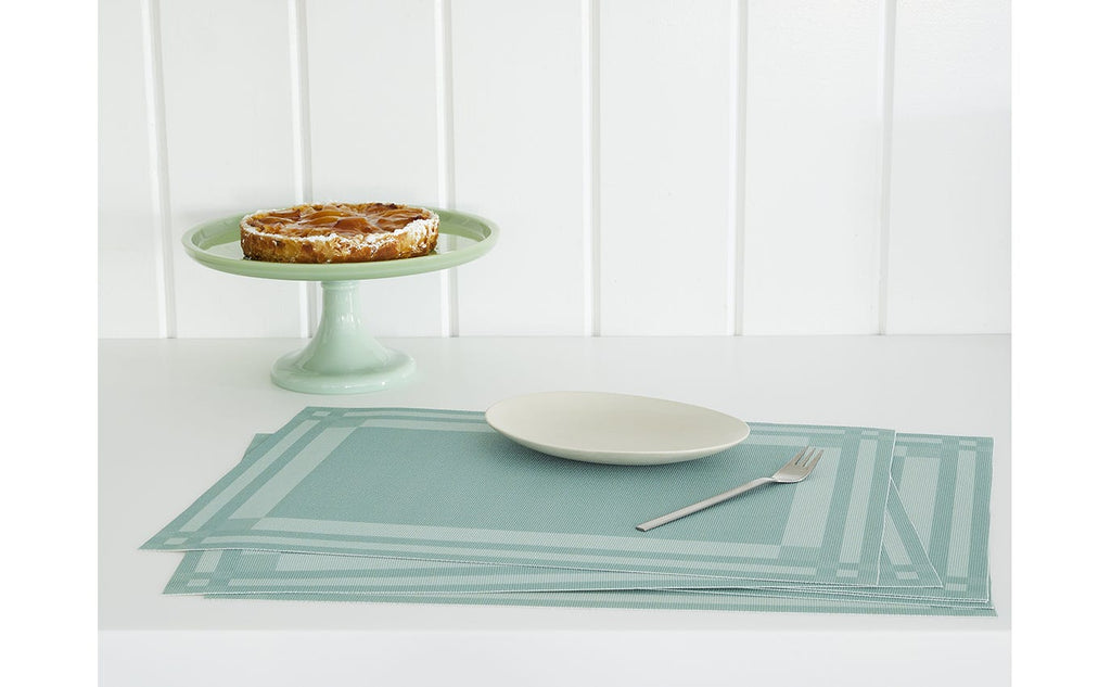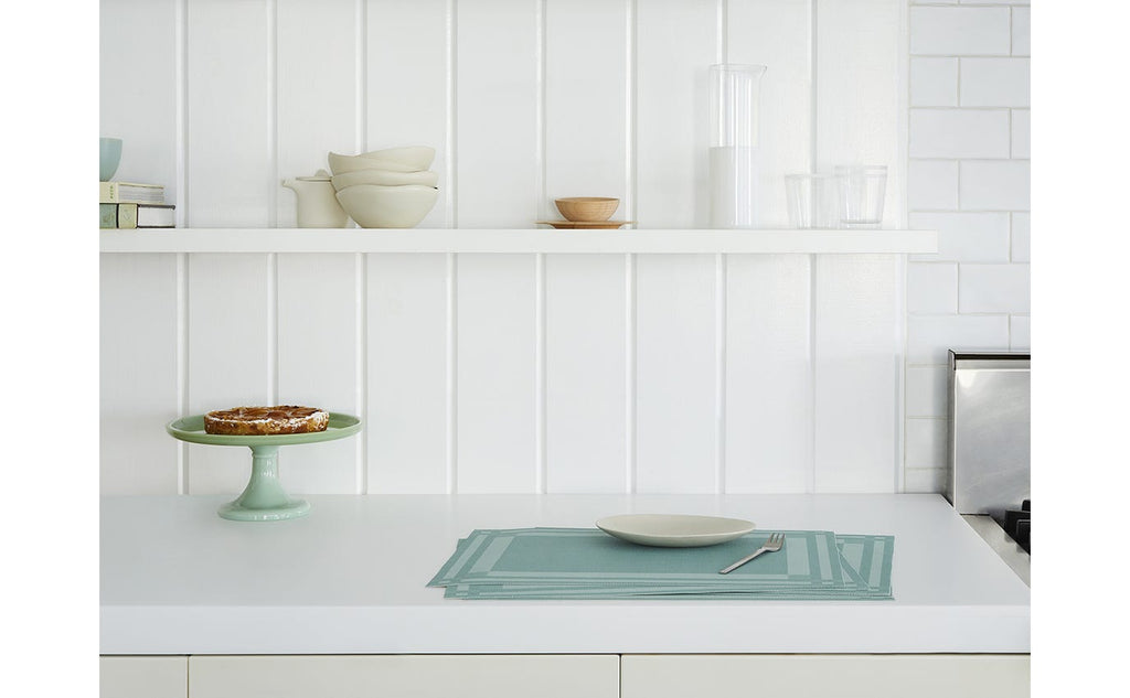 Developed in collaboration with Martha Stewart, Handkerchief is inspired by vintage table linens framed by hand-embroidered borders. Our design team reimagined these intricate, intimately scaled geometries by printing them on woven placemats, combining traditional motifs with a sleek, versatile material and a contemporary color palette of tonal hues.