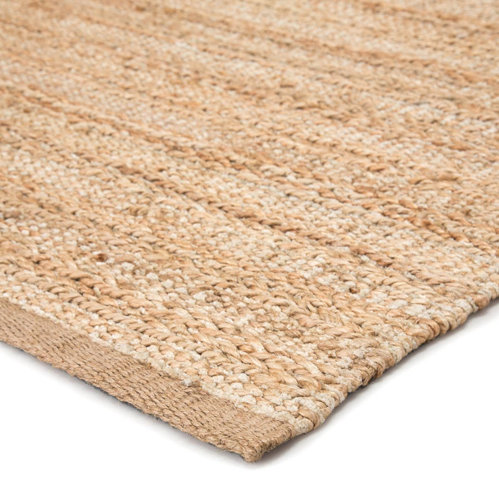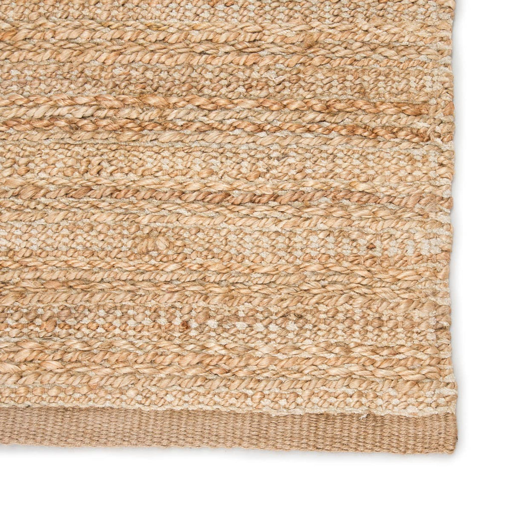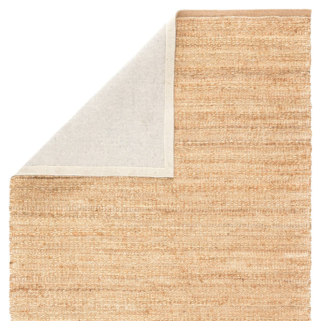 A natural area rug with a contemporary touch, this cotton-backed layer pops with a warm wheat hue and bright white accents. The organic texture of the hand-woven rayon and jute offers an intriguing feel and bohemian-inspired style.