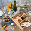 Our Maple Utility Caddy is simple, elegant modular storage system. The handled piece has a total of five individual removable dividers which neatly create storage compartments for serveware, napkins, condiments and more. An easy solution to outdoor dining, picnicking and even gardening. Throw in what you to need to carry and remove dividers depending on the task at hand.