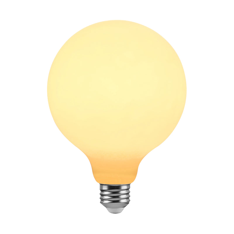 This oversized light bulb is 5" in diameter and gives off 540 lumens of light using only 6 watts of energy. The color of light is warm at 2700K. And we guarantee this Globe shaped oversized light bulb for 3 years.