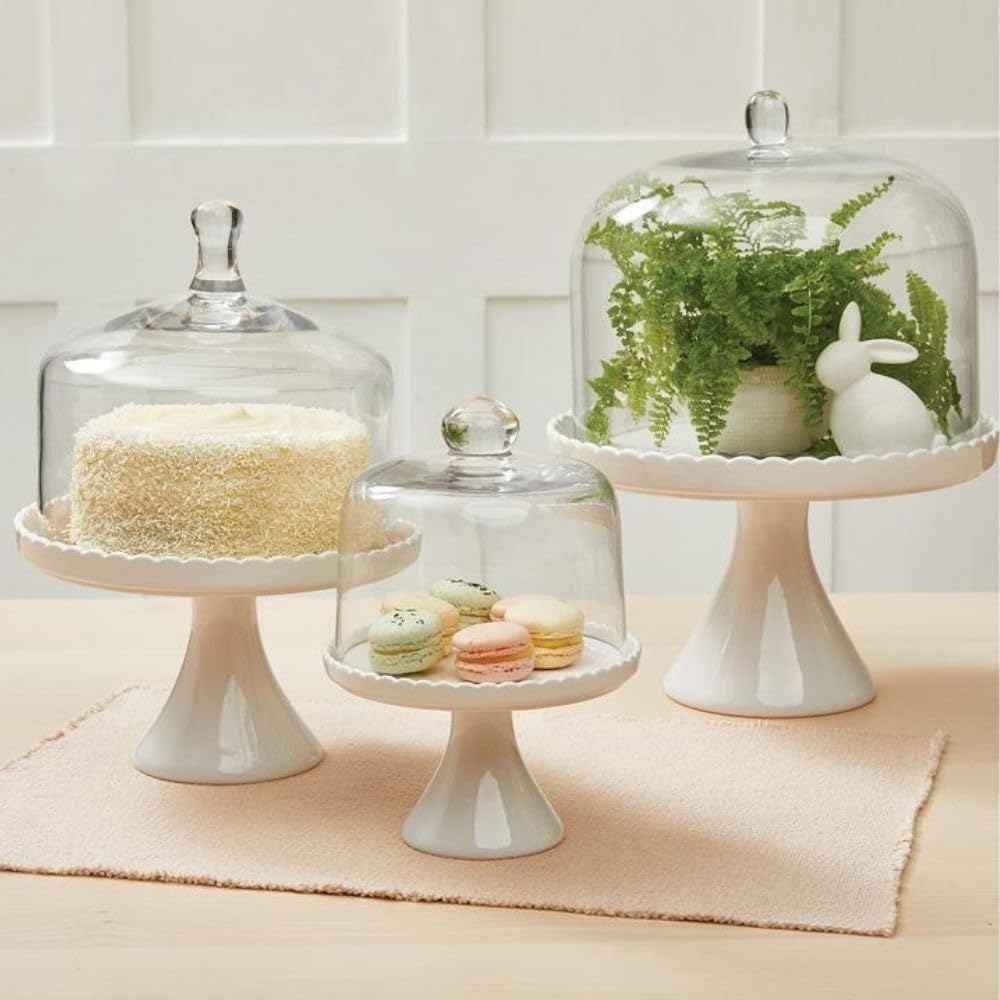 Tableau's glass dome , so it's large enough to display a tower of pastries or cheeses, plants, or candles. Why not try stringing through a fairy light to make a stunning bit of decor?