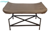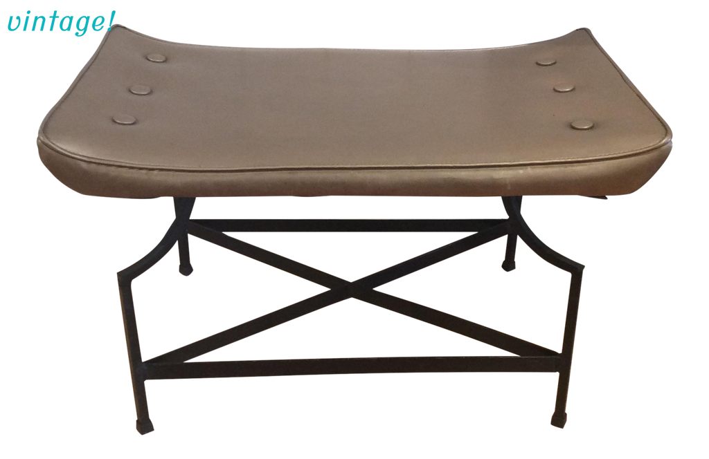 Very cool rare 1950s mid century modern bench/ottoman. Gold tone vinyl seat with a black iron base with a sweet, Asian-like flair. Super retro look!