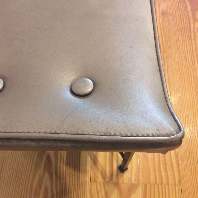 It is in very good, vintage condition with no rips or tears in the vinyl. Backing on vinyl, on the underside is a little loose. Nice patina on the iron. Very sturdy with many years of use left in it.