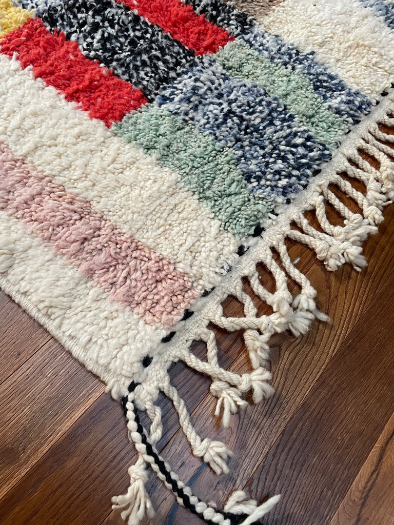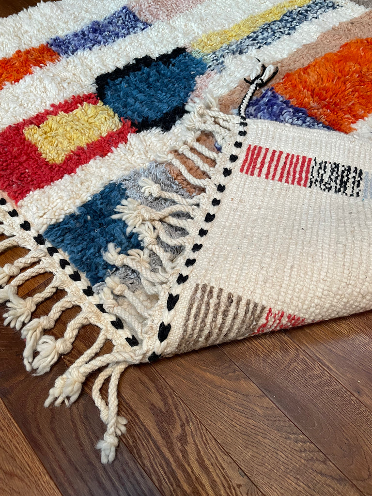 Beni Ourain rugs are likely the most comfortable Moroccan rugs you’ll ever encounter! They are made from 100% sheep wool and are 100% undyed. These Handmade Wool rugs are made for those who appreciate truly the natural world. They are the epitome of warmth and luxury. All Beni ouarain rugs share a signature style with geometric designs. It’s a classic design for any room. You’ll also see symbols. They tell true stories from each weaver’s life.