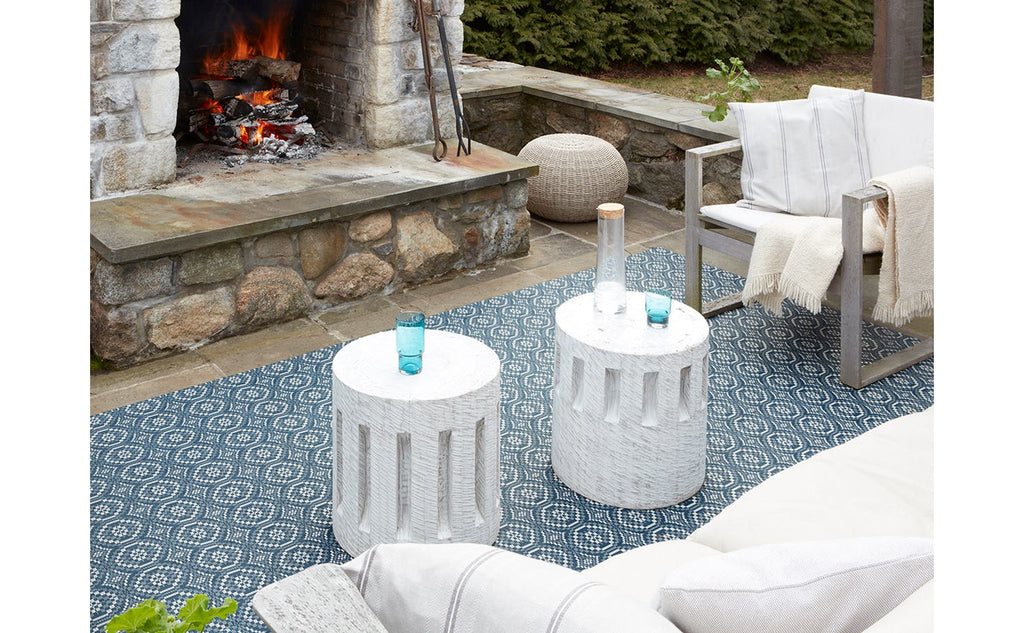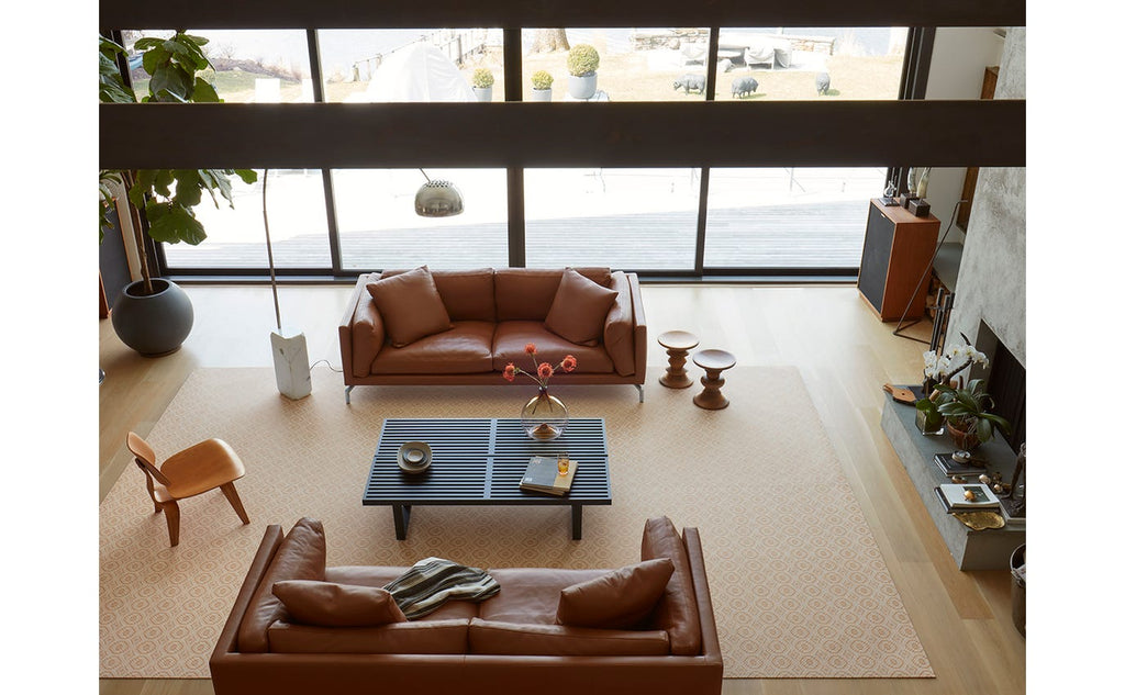 With lively yet refined rows of interlocking concentric circles, Overshot is a contemporary interpretation of traditional textiles. It is named for a weave structure with a long history and a distinctive construction: as the weft yarn jumps or "shoots" over the foundational plain weave of the warp yarns, a decorative pattern layer is created. This design takes inspiration from vintage American coverlets. Used as the topmost covering on a bed and distinct from quilts, these textiles were especially popular during the early to mid-nineteenth century. The earliest examples were made with an overshot weave, and this craft continues today.