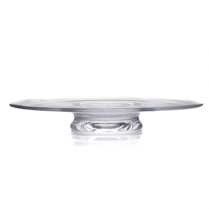 This elegant - yet easy - serving piece reflects brilliantly upon anything it showcases, from a towering birthday cake to a selection of Vermont cheeses. The large surface and substantial base make a stunningly simple presentation.