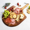 The broad acacia wood board also doubles wonderfully as a charcuterie board for serving favorite cheese, meat, fruit, nuts and more.