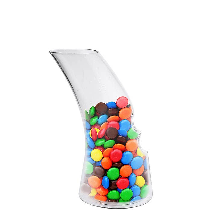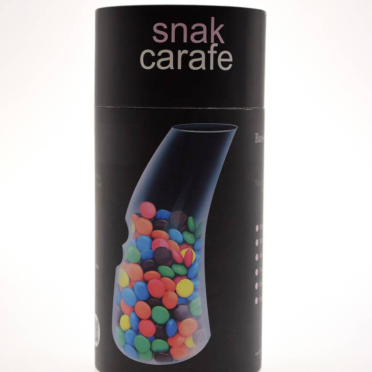 The best-selling Snak Carafe is now improved with a new silicone lid. The perfect way to keep your favorite snacks dust-free and ready to serve! Snak Carafe lets you enjoy snacks hygienically by pouring your favorite nuts or candies directly into your hand, instead of sharing from a communal bowl. No more fingers in the party snacks! Share snacks, not germs! The artisan-made mouth-blown carafe features a clean, individually crafted, contemporary design with ergonomic finger notches for easy pouring. Each one is handmade and unique. Note: lid does not provide an air-tight seal.