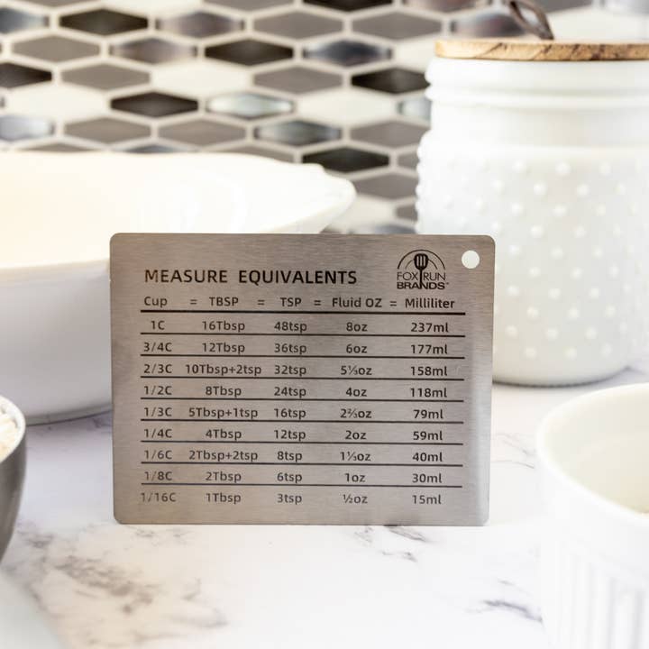 -MEASUREMENTS AND CARE: Dishwasher and hand wash safe for cleaning. Refrigerator magnet measures 4.3” x 3.4” x 0.2”. Provides conversions for cups, tablespoons, teaspoons, fluid ounces, and milliliters