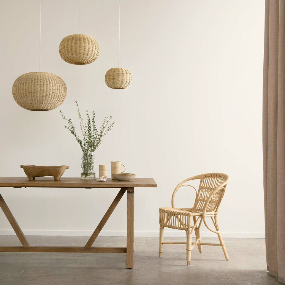 We are proud to introduce these contemporary rattan lamps designed by the leading Australian Industrial designer Darcy Clarke from his studio in Brisbane. His inspiration comes from the beauty of nature, Australian artifacts, and ancient weaving methods. Darcy Clarke has created a range of sculptural woven lamps, wooden stools and rattan screens with the special trademark of a nature-meets-modern design look. His designs are found in hotels, restaurants and cafes all over the world, and now they can also become yours. These beautifully woven lamps come in three different sizes. You can use them individually or mix and match the different sizes to create your own sculptural lightning piece.