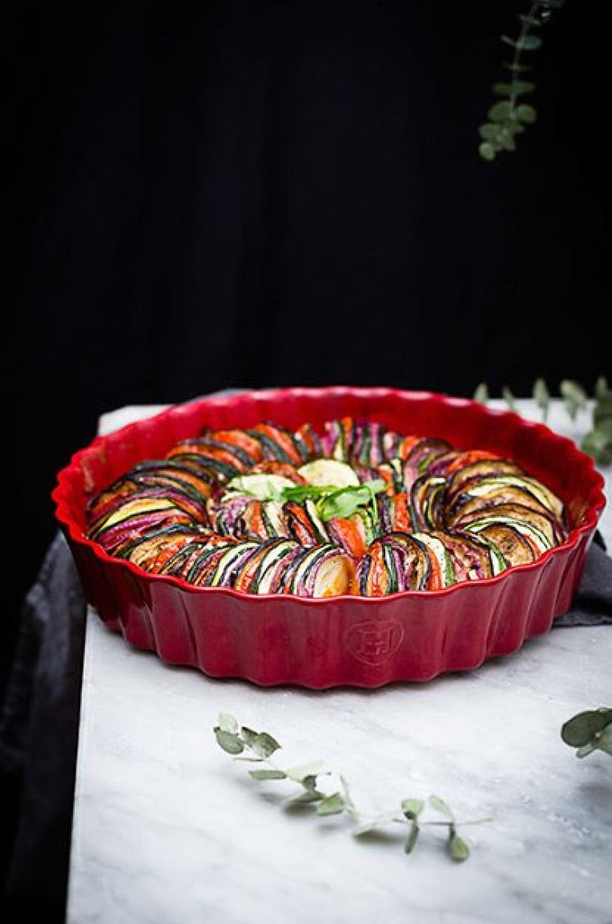 Efficient from baking to presentation, our Tart Dish distributes heat evenly & gently, preventing the dough from drying out. Lightly buttering your dish is enough to ensure the tart releases easily. Need to reheat a slice of quiche the next day? Our Tart Dish is microwave safe for effortless reheating! The highly-resistant mineral-based glaze is naturally non-toxic & fit for everyday use; it withstands cutting directly inside, multiple dishwasher passes, and even cleaning with an abrasive sponge!