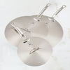 2. SPACE SAVING - Flat disk design is easy to store. Small fits multiple pan sizes including 8.5" sauté pan, 2.5qt saucier, and sauce pots (up to 3-quarts). Large fits larger sauté pans, 4-quart sauce pot, stock pots and rondeaus