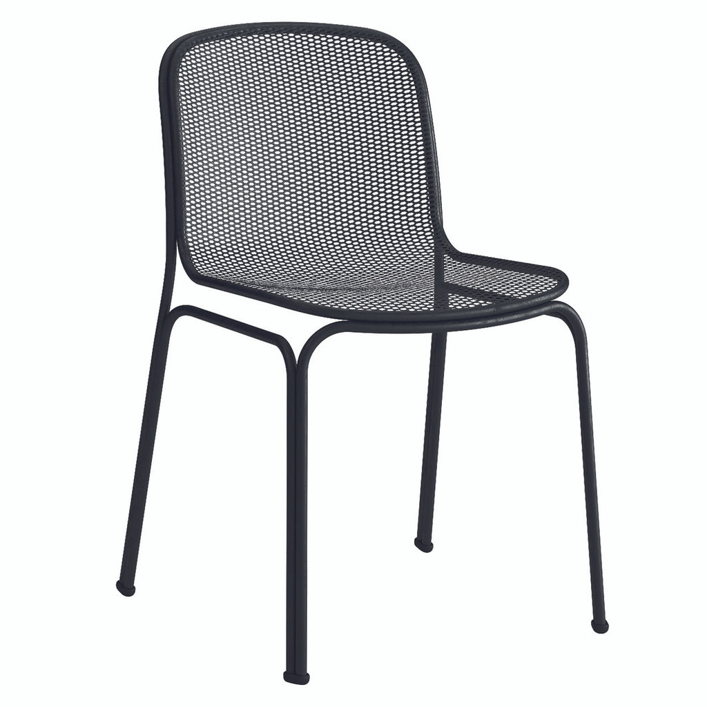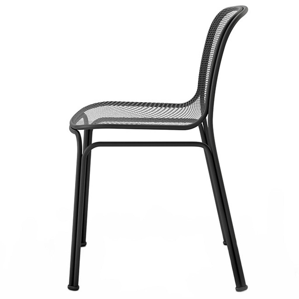 Villa is an entirely metal chair featuring a steel rod frame and a mesh shell. Inspired by the outdoor seating in natural cane typical of Parisian terraces, Villa reinterprets the assembly method of the structural components with the aim of composing single parts to achieve an effective structural rigidity. Through a subtle play of curves and connections, the shell is slightly raised laterally from the legs, thus making the chair easy to move and manage. Suitable for every furnished setting, especially for outdoor use.