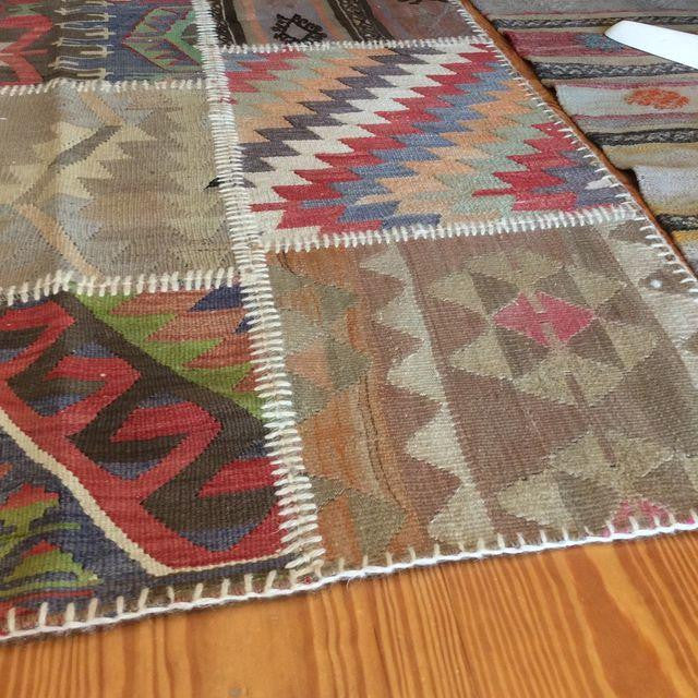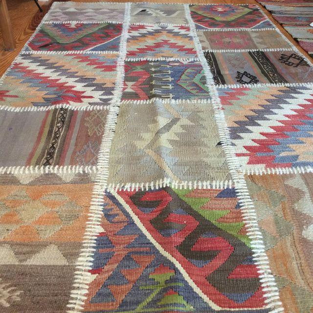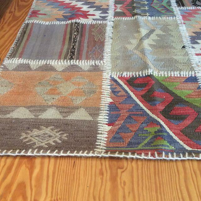 Vintage Anatolian kilim patchwork rug in beautiful muted tones. Unused excellent condition. 100% handmade from wool and cotton.