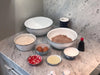 This enamelware is made of carbon steel coated with a porcelain enamel and trimmed in stainless steel. There will be variations in the shading of colors and pattern formations which are the results of the hand-dipped process.
